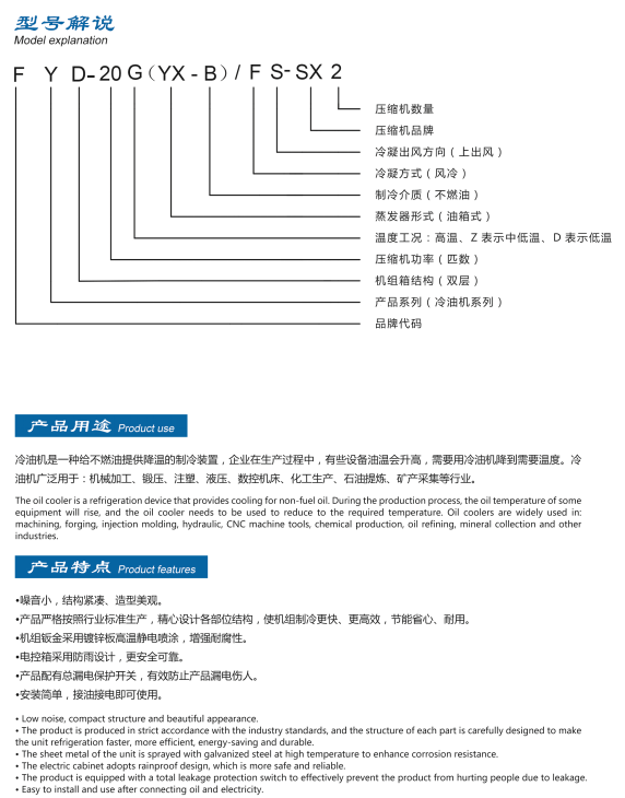 主营产品有:工业冷水机系列、油冷机系列,冷库机组系列、海水制冷机系列、工业降温空调系列,承接冷库安装、工业冷水机降温、海鲜养殖等项目。