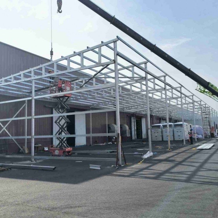1、钢梁安装顺序宜先从靠近山墙的有柱间支撑的两榀刚架开始,祈虹彩钢厂一般宜采取扩大拼装和综合安装的方法从建筑物的一端开始,向另一端推进,并注意安装过程中所引起的积累误差。