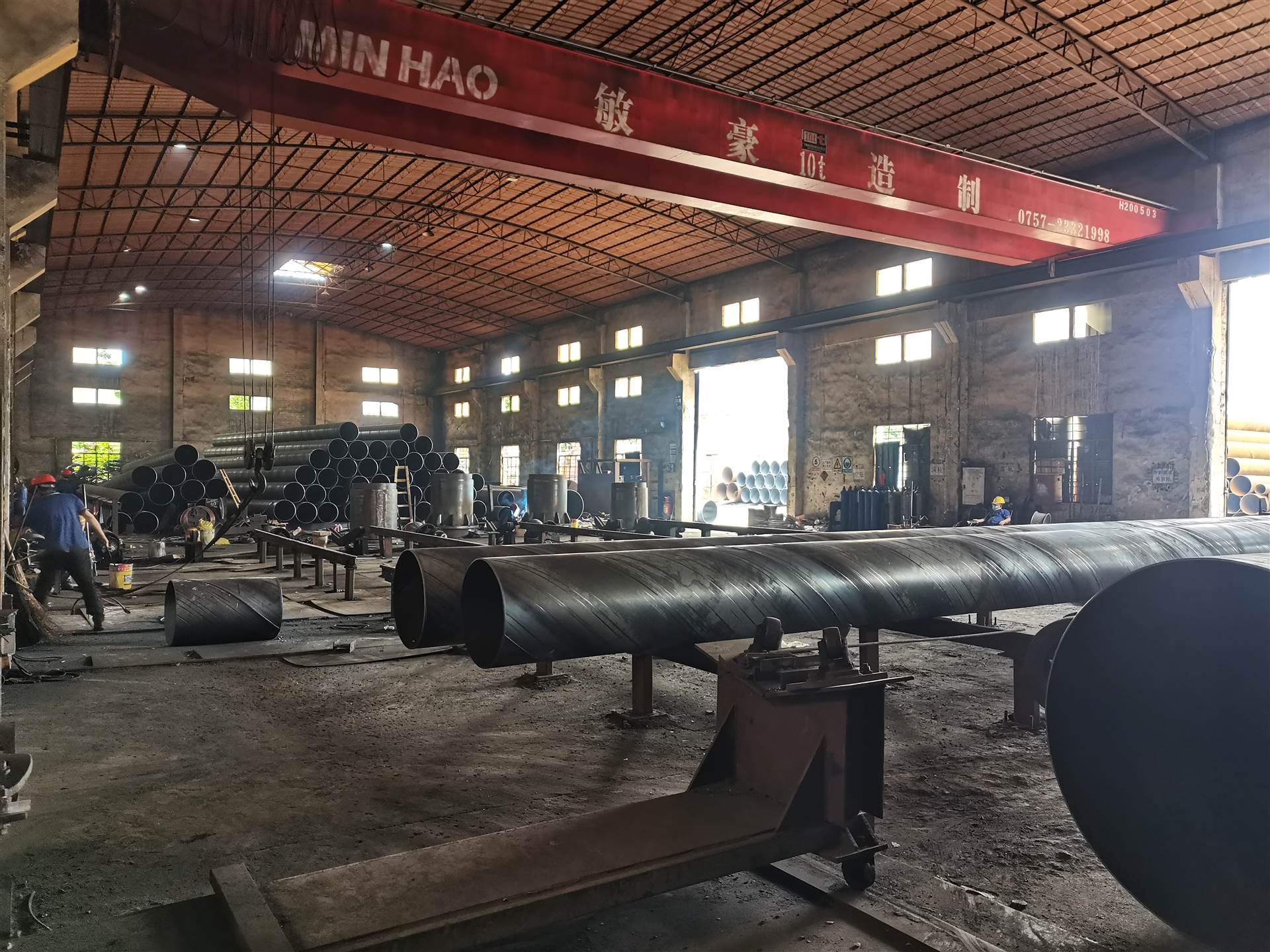 它特别适用于焊接大口径的螺旋钢管,是以连续焊丝作为电极和填充金属,工作时在焊接区的上面覆盖一层颗粒状焊剂,因此,它特别适于焊接大口径的螺旋钢管。