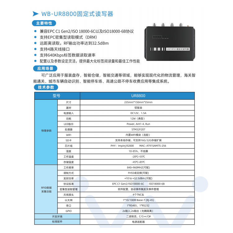 配置以及参数设定灵活,提供标签阅读量和工作性能