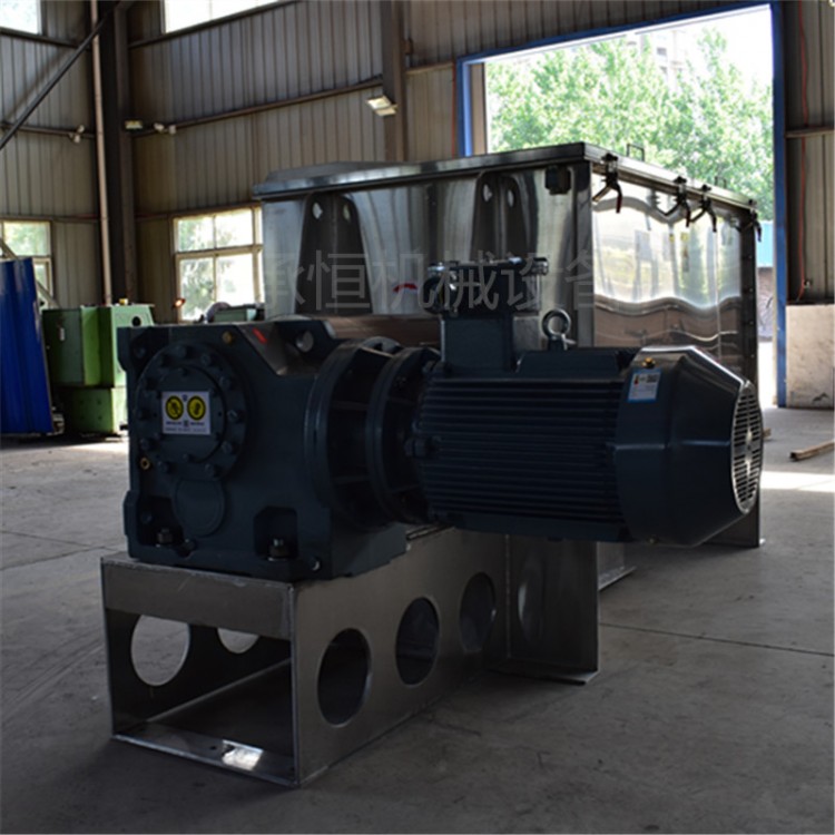 由于双螺旋的公转而使粉体沿着椎体壁作圆周运动。螺旋叶片的自转,使粉体向椎体排放做径向运动。粉体自椎体向上升及螺旋外圆周表面上排出,即螺旋轴方向。螺旋在混合机内公转,自转的组合,造成了粉体的四种流动形式,也就是对流,剪切,扩散,掺和的复合运动。因此粉体物料在这种混合机内能迅速达到均匀的混合。