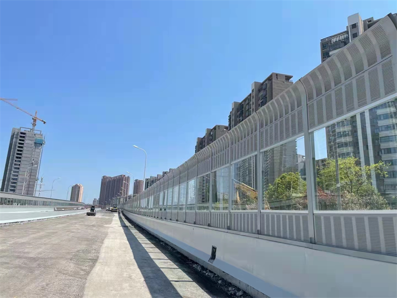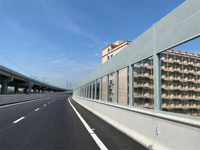 桥梁声屏障外形美观大方,做工扎实,运输、安装方便,造价低,使用寿命长,特别适用于高架高速道路和城市轻轨、地铁的防噪声使用,是现代化城市理想的隔声降噪设施。