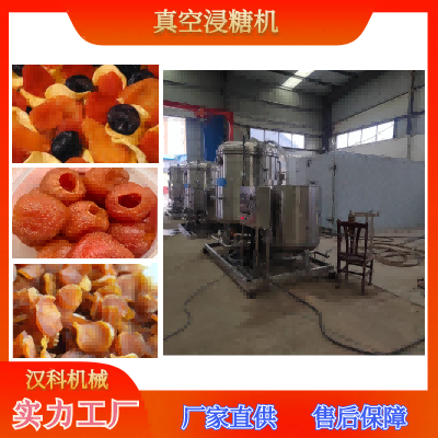 真空浸糖锅是腌制各种蜜饯、果脯的机器设备,其工作原理是在真空的状态下,将果肉中的空气用真空循环泵抽出,然后破真空时,高浓度的糖水在真空浓度差及重力作用下会快速渗入果肉中,完成渗糖效果,加工出来的果脯蜜饯,渗糖均匀、不易结晶返糖,保持了水果原有的色泽和口味,同时整个加工过程均在密闭的状态下进行,达到了高效、卫生的要求,是现在果脯蜜饯食品加工厂理想设备。