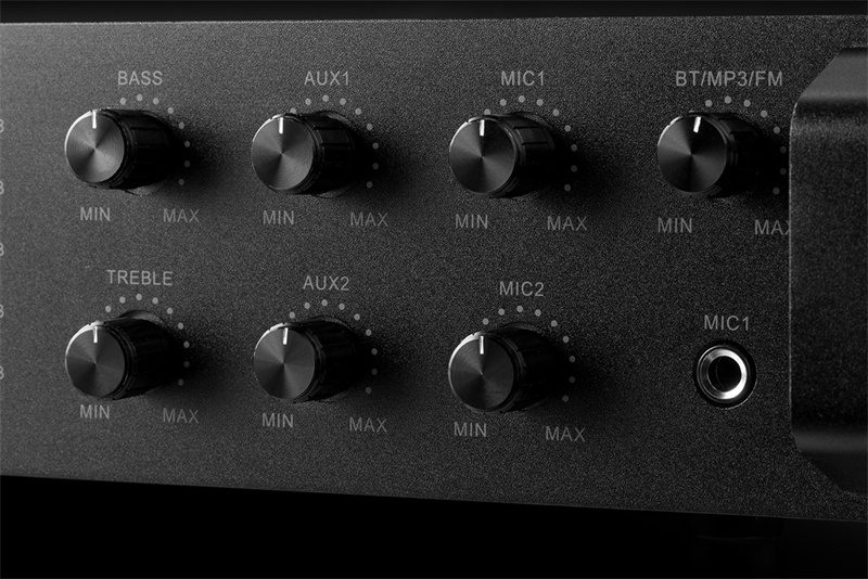 2路MIC、2路AUX输入、MIC1具有优先默音功能