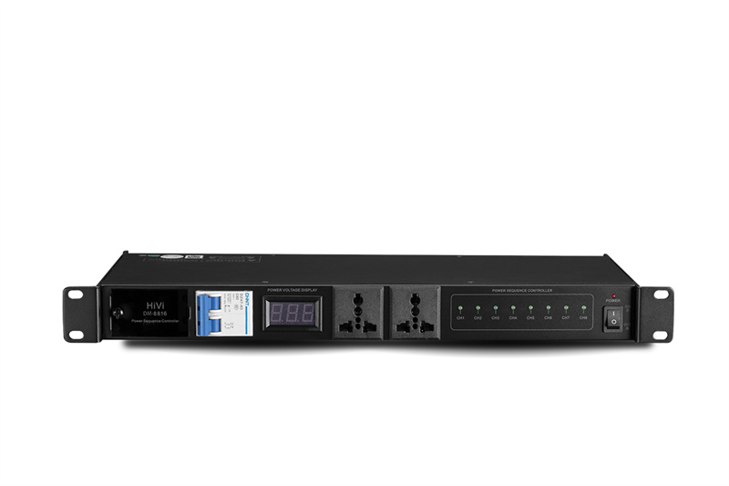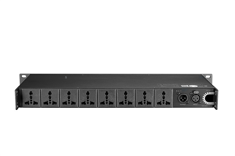 特别为设备较多而设定的电源开关时序器,能更省时更提升效率更能使设备稳定工作◆其每一路输出都经内部电源陷波即内置电源文波过滤处理器,增强其电源供应的稳定,降低设备的噪音,提升设备的信噪比◆每路输出可独立操控亦可按程序设定◆操作快捷方便,更能适应各种不同环境使用◆输出通道:8CH Output◆辅助输出:1CH Output◆每路单独输出功率:220V/3000W Output◆每间隔时间:1ms◆照明灯电压:AC12V◆后置照明指示灯:On◆控制:Lamp-on switch,bypass-button◆连接线:3-core,microphone◆指示灯:Power/ChannelOn/Bypass◆输入输出插座:U.S.A Standard Three Wire AC Connector◆控制信号连机插座:Trs◆电源:220V/50Hz-60HZ◆尺寸:482×211.5×44 mm◆毛重/净重:3.3/2.7kg (±0.5kg) 采用63A空气开关输入接口,具有过流,短路时自动断开功能,有效的保护用电安全采用30A大电流继电器输出, 标准E I A接口插座;