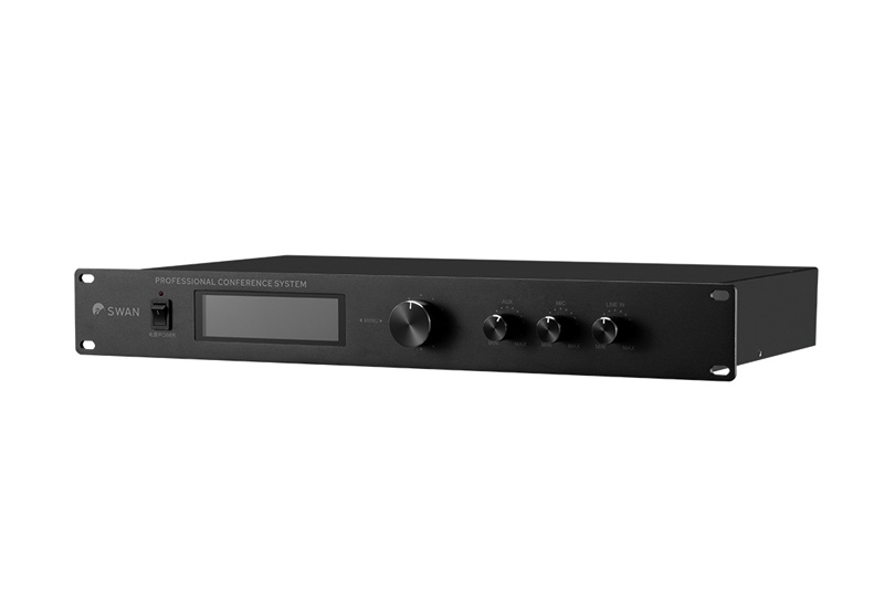10. 系统自带电子菜单旋钮,具有元音量调节、混音输出音量调节统一、外接有线麦克风音量调节、混音录音输出音量调节;