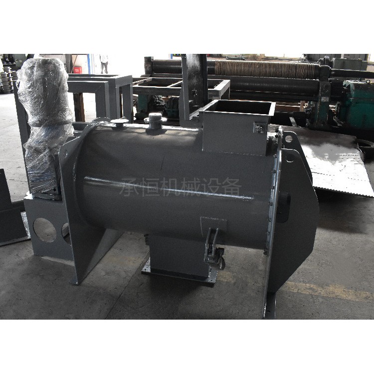 本机通过机械传动,使S式搅拌桨旋转,推动物料往复翻动,均匀混合,操作采用电气控制,可设定混合时间,到时自动停机,电动倒料,从而提高每批物料的混合质量,达到高均匀度的混合