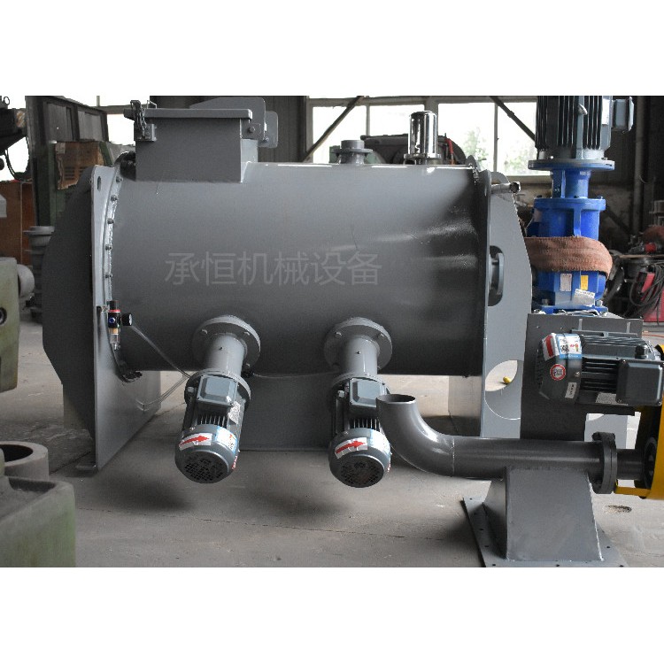 犁刀混合机对需要固-液混合的物料,混合液体通过喷液装置均匀喷洒在筒体内运动的物料上。广泛应用于化工、建材、染料、颜料、涂料、塑料、玻璃、添加剂、橡胶、食品、饲料、生物工程、陶瓷、耐火材料、复合肥、稀土以及核能染料、电池材料等项目的粉体与粉体,粉体与液体的混合。