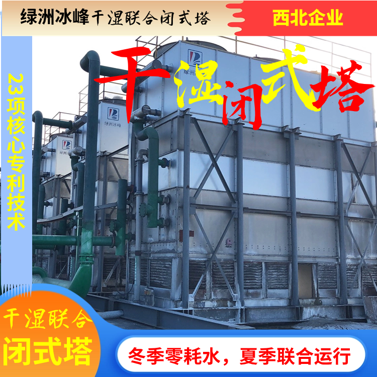 干湿联合闭式冷却塔,闭式冷却塔结构上分成2部分,上部为翅片式空冷器,下部为逆流闭式冷却塔换热盘管,冬季用上部空冷器能够满足降温工艺要求,夏季采用湿式换热器,利用汽化潜热降低热媒介质温度,既能够降低初期投资,又能蕞大限度的节约水资源。
