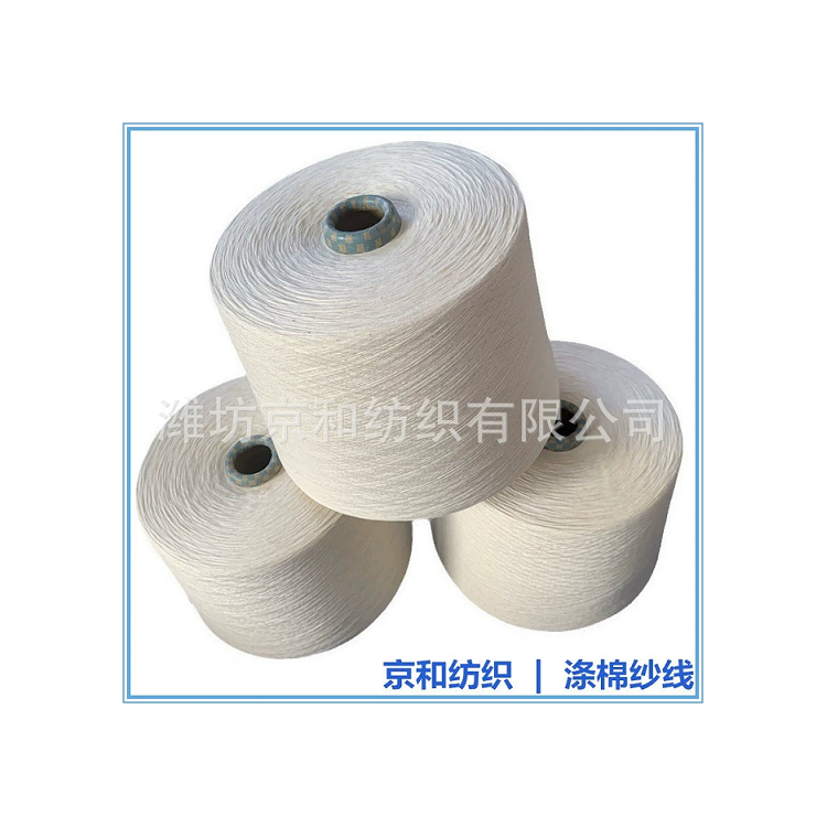 纱线条干好,毛羽少、挑三丝,适合针织、机织,用于做服装面料、针织汗布、针织起绒、针织毛圈、地毯合股之后用于做织带等。涤棉纱常规配比:t65/c35 t50/c50 t80/c20 cvc60/40 cvc70/30 cvc80/20等配比,常规支数有:6支—60支。 可按客户要求订做反捻纱、竹节纱、合股纱等。