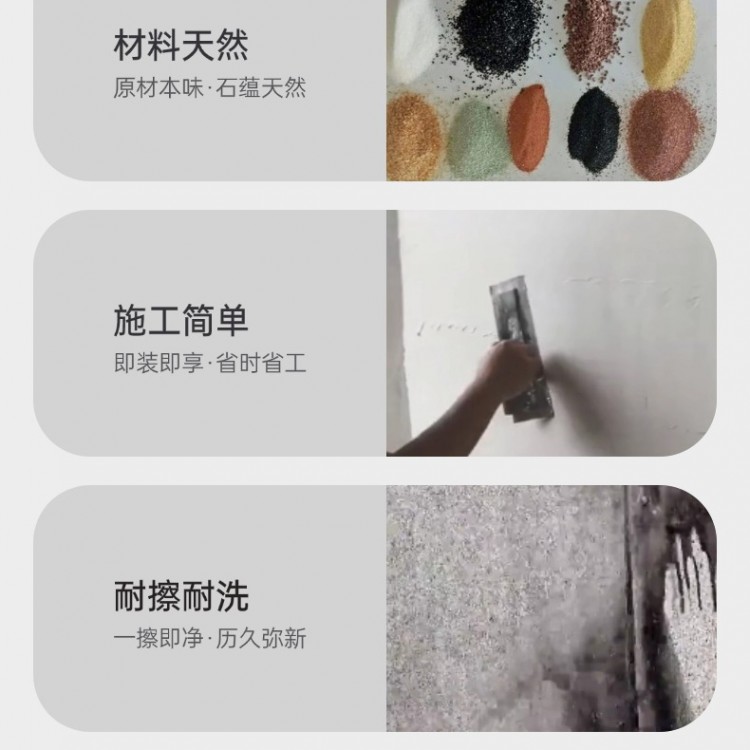 有人担心玛拉彩石用于外墙会起皮,实际上,蓝翠鸟玛拉彩石附着力强,能牢牢附着在墙面上,不易脱落、起皮。它还拥有出色的耐候性,可轻松应对风吹、日晒、雨淋,即便历经多年,墙面依旧能保持完好。其特殊配方让防水、防潮性能优异,在南方潮湿地区或常年受雨水冲刷的外墙,也不会出现起皮现象。
