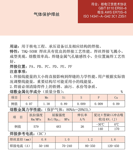 THQ-50HR碳钢焊丝ER50-6焊丝ER70S-6焊丝