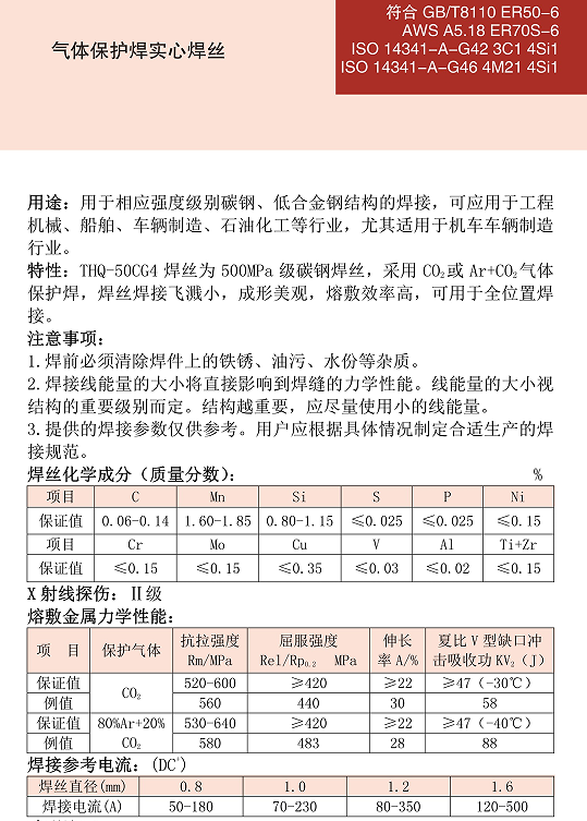 THQ-50CG4碳钢焊丝ER50-6焊丝ER70S-6焊丝