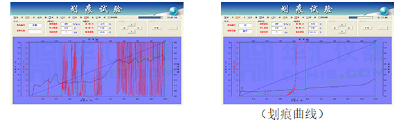 划痕试验:用来检测涂层与基体的结合力的临界载荷。通过自动加载机构将负荷连续加至划针(金刚石压头)上,同时移动试样,使划针划过涂层表面,通过各传感器获取涂层脱落时的声发射信号和摩擦力变化信号,得到涂层与基体的结合力的临界载荷。