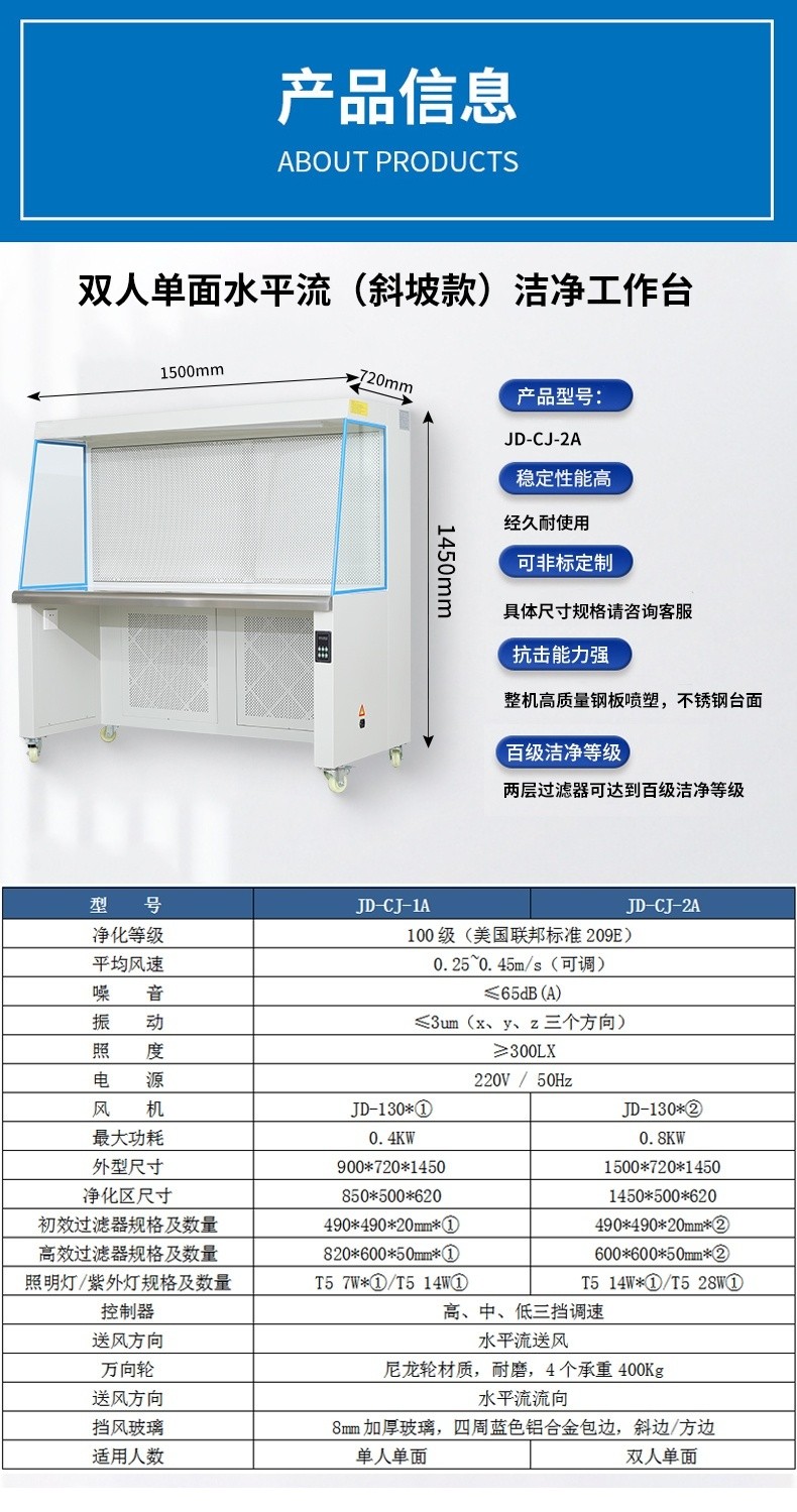 您所在的位置:中商114>找产品>机械设备>空气净化设备>JD-CJ-2A 双人单面水平流(斜坡款)