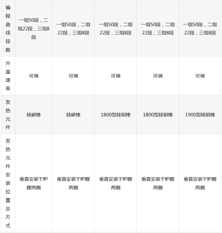 5、控温仪表具有程序功能,可设定升温曲线,可编程序30段
