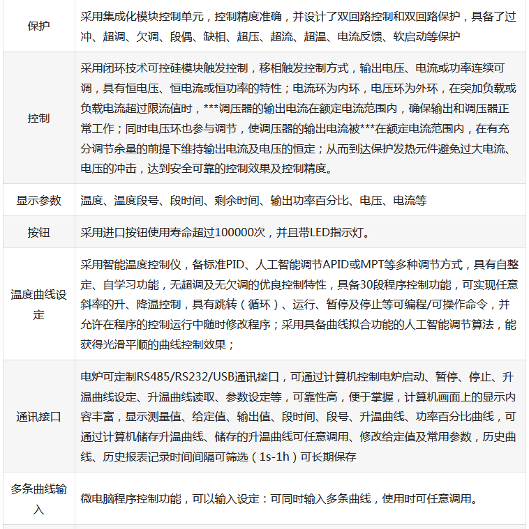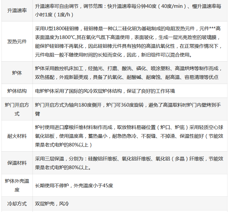 11、根据工艺要求可选择1400℃(硅碳棒加热),1700℃(硅钼棒加热)