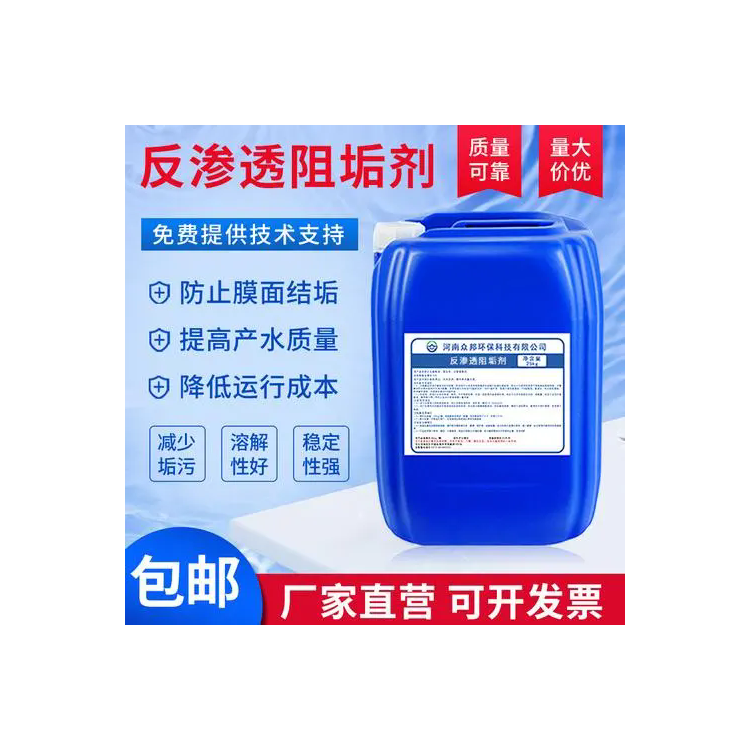 - 防止结垢:在反渗透水处理过程中,原水中的钙、镁、钡、锶等金属离子以及碳酸根、硫酸根等阴离子,在反渗透膜表面浓缩后容易形成难溶性盐类沉淀。反渗透阻垢剂能通过晶格畸变、分散、螯合等作用,阻止这些离子结合形成水垢,防止水垢在反渗透膜表面沉积,确保反渗透系统的稳定运行。