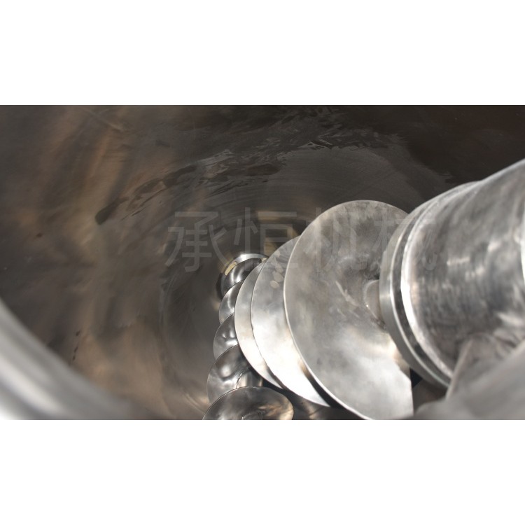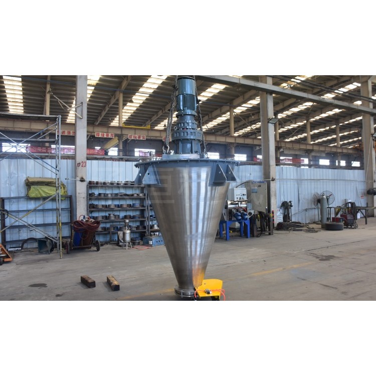 双螺旋锥形混合机由传动部分、螺杆搅拌器、倒锥形桶体组成,搅拌器为两根非对称式螺旋它们在绕轴线自转的同时借助转臂的回转作用在锥体内作公转运动,该设备通过螺旋的公、自转使物料反复提升在锥体内产生剪切、对