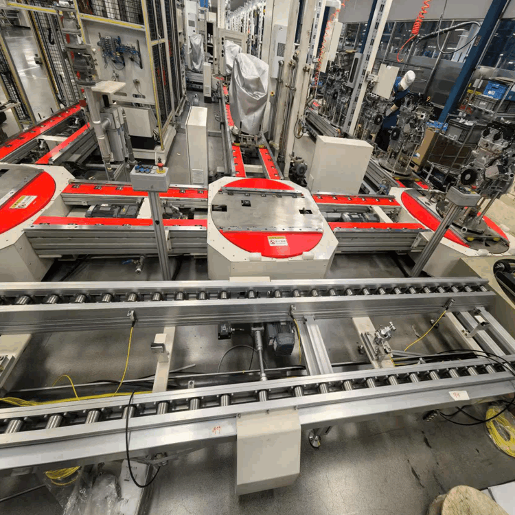 顶升移载滚筒线实现电路板在检测工位与包装线的精准转移。