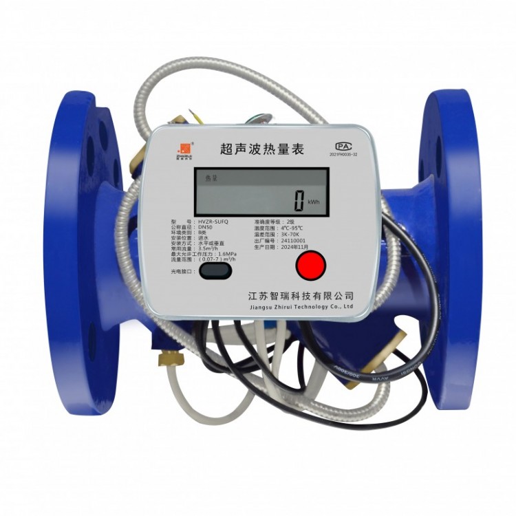 超声波热量表是一款计算热量的仪表。将一对温度传感器分别安装在通过载热流体的上行管和下行管上,流量计安装在流体入口或回流管上(流量计安装的位置不同,终的测量结果也不同),流量计发出与流量成正比的脉冲信号,一对温度传感器给出表示温度高低的模拟信号,而积算仪采集来自流量和温度传感器的信号,利用计算公式算出热交换系统获得的热量,与建筑业过去已普遍使用的户用计量表——水表、电表、煤气表相比,有更复杂的设计和更高的技术含量。