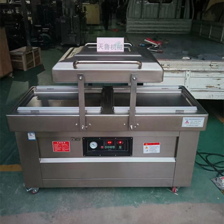 天鲁真空包装机以塑料复合薄膜或塑料铝箔复合膜为包装材料,对各种仪器,粮食.果品.酱菜,果脯,水产品,土特产,化工原料,电子元件等。不论是固体,粉状,糊状或液体均可进行真空热封包装.由于袋内真空度高,可有效的防止脂类品氧化和好氧性细菌繁殖而引起的物品变质,达到保质,保鲜,保味,保色的功能,延长产品(商品)的储存期限,同时对某些松软的物品,经过真空包装机包装后缩小包装体积,便于运输和储存.