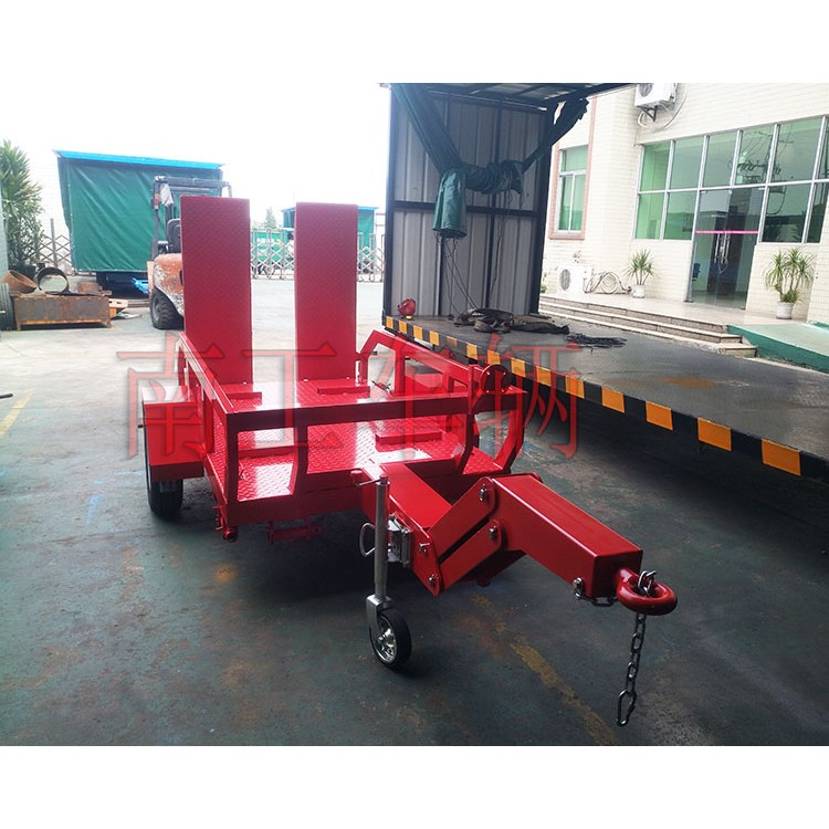 0.5吨带爬梯消防车专用平板拖车南工车辆专业定制,充气胎,消防红,外观精美,安全耐用,应用场合:小吨位平板拖车一般适用于小家电、家具、印刷品等轻工行业使用,工业上一般采用实心轮胎,本款拖车用于消防车专用,充气胎。