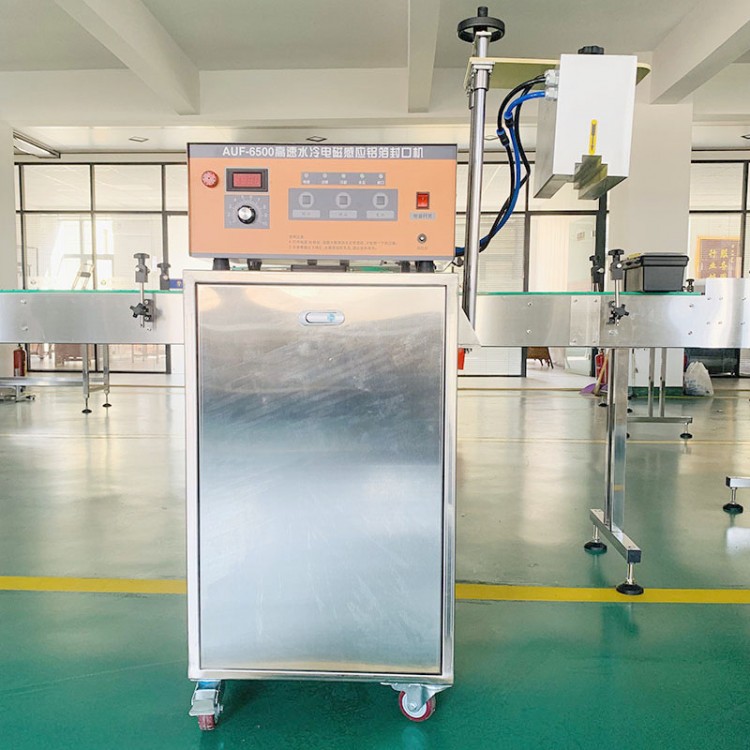 电磁感应复合铝箔封口机具有双冷却系统的产品,适合于有连续工作需要的地区使用,可对容器瓶口进行封口。容器的材质可以是PE,PP,PS,PET、ABS以及玻璃、陶瓷,不能用金属瓶体及瓶盖。