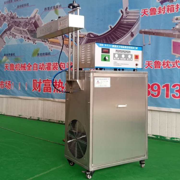 电磁感应复合铝箔封口机具有双冷却系统的产品,适合于有连续工作需要的地区使用,可对容器瓶口进行封口。容器的材质可以是PE,PP,PS,PET、ABS以及玻璃、陶瓷,不能用金属瓶体及瓶盖。