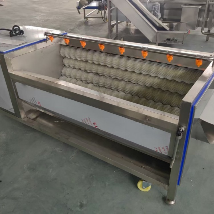 2.水产行业:在水产加工厂,毛辊清洗机可用于清洗鱼类、虾类、蟹类、贝类等水产品。能快速去除鱼身上的鳞片、黏液,虾蟹表面的泥沙以及贝类内部的杂质,为后续的加工处理提供干净的原料。