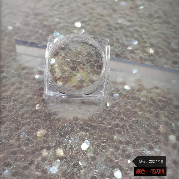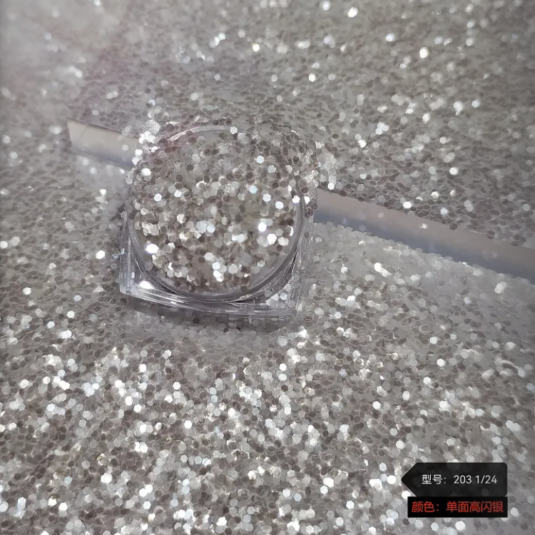金葱粉广泛应用于圣诞工艺品、化妆品、丝网印刷行业(布料、皮革类、制鞋类—鞋材类、年画系列)、装饰材料(工艺玻璃艺品、聚晶玻璃;晶图玻璃水晶球)、油漆装潢、家具喷漆,包装,圣诞礼品,玩具笔等领域,其特点在于增强产品的视觉效果,使装饰部分凹凸有层次,更具立体感。而其高度闪光的特性,更使得装饰物鲜艳夺目、倍添光彩。还有化妆品,以及在化妆品领域的眼影,以及指甲油和各类美甲用品上有着广泛的应用。由于金葱粉是由塑料膜加上涂层而形成的光亮效果,在食品包装行业有着广泛的应用。但是金葱粉严禁添加到食品中