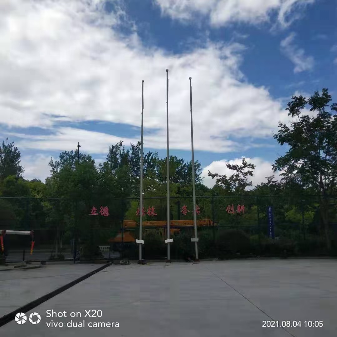 5、内置式升旗装置:专用升降旗绳藏于旗杆内部,免受风吹雨淋之苦、不易被人为破坏,延长了旗绳的使用寿命,同进也摒弃了旗绳在旗杆外部的累赘,使外观更加和谐美观。