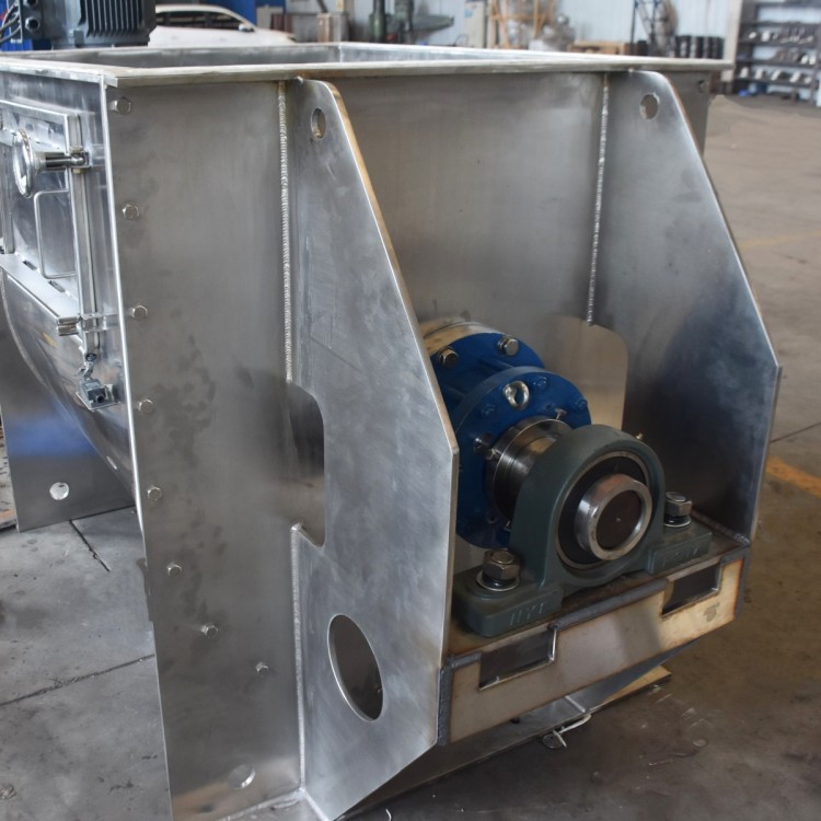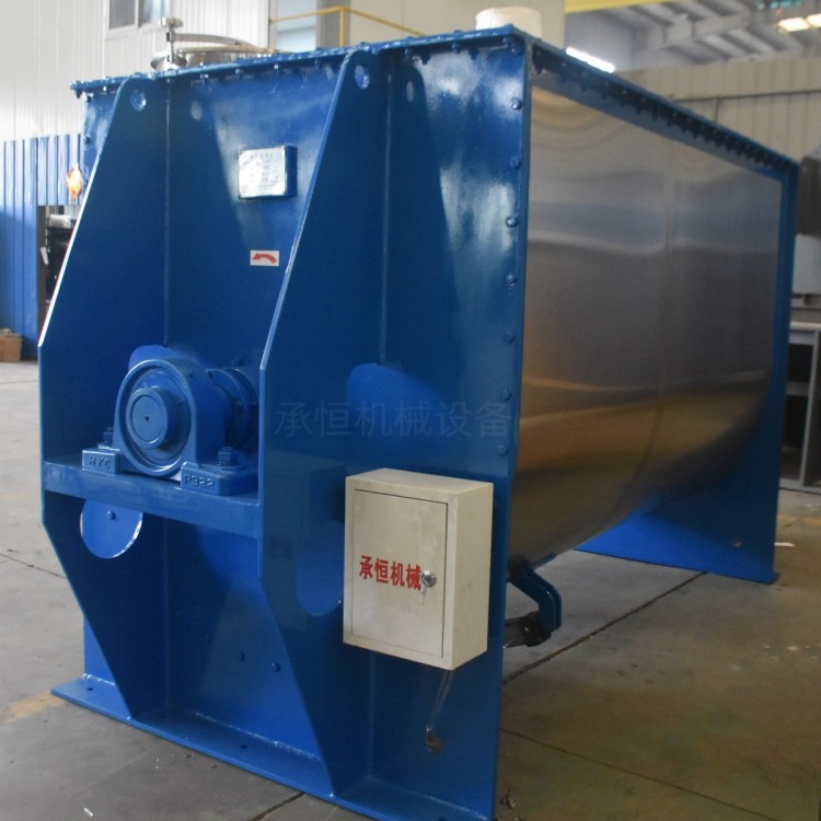 卧式双螺带混合机结构是由U形筒体、螺带搅拌叶片和传动部件组成,其功能是将各种成份的粉料、液体混合均匀,有适用性广、混合均匀度好、物料残留少维护保养方便等特点,是粉状物料混合加工的理想设备。