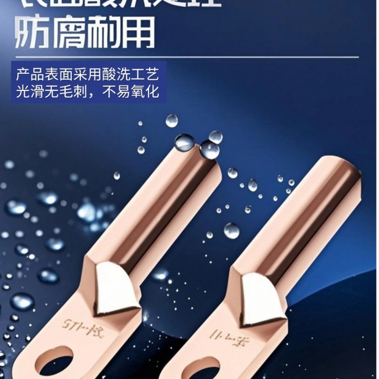 永畅铜鼻子采用T2 高纯度紫铜打造,表面镀锡抗氧化。外观为 “接线管” 结构,镀锡后银白光亮,窥口可直观查看线芯插入深度,规格丰富适配不同线径。主要用于连接电缆与配电箱、电机、光伏汇流箱等设备,实现电力可靠传输。广泛应用于电力系统、工业设备、新能源(光伏、风电)、建筑电气、船舶制造等行业。产品特点突出:紫铜基材导电性能优异,镀锡层抗腐蚀耐老化;冷压工艺保障机械强度,压接后与线芯贴合紧密;设计避免虚接,且规格覆盖 1.5 - 630mm² 线径,适配多场景大电流传输需求。