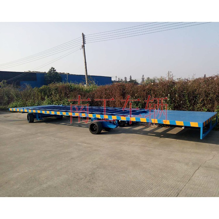 15吨20尺集装箱平板拖车佛山南工专业订制,按顾客要求订制,产品质量好价格优,作为大型、重型移动设备、集装箱拖车底盘,可用叉车、牵引车、卡车等牵引,可订制双向牵引,不需要掉头。