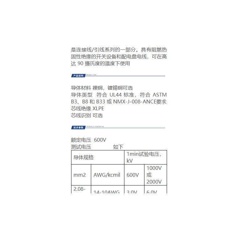 是连接线/引线系列的一部分。具有阻燃热固性绝缘的开关设备和配电盘电线,可在高达 90 摄氏度的温度下使用