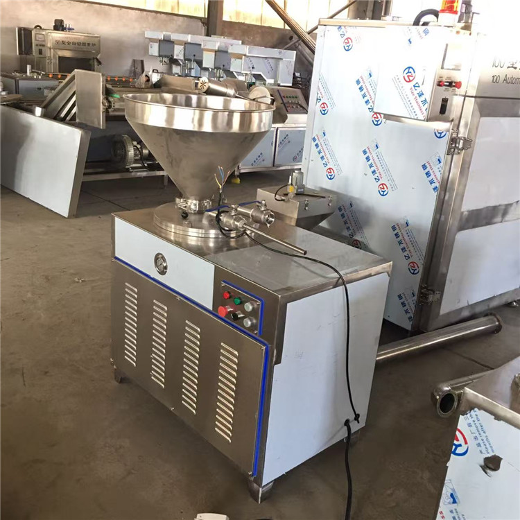 灌制好吃的香肠要用到灌肠机、我公司生产的灌肠机有:液压灌肠机、定量扭结灌肠机、真空灌肠机、液压灌肠机是加工肠类制品的设备。能灌制大、中、小各种规格的肠制品、猪血糯米肠灌制机出厂时配置不同直径的灌肠杆。客户使用起来方便。也可以根据客户要求定制不同规格的直径灌肠杆。汽动定量灌肠机是利用气泵带动液压缸把料顶置上来。通过灌肠杆自动定量、自动打结、香肠灌肠机操作简单省时省力。该产品外形美观、做工精良、操作方便、使用安全可靠。该机的料斗、阀门、灌肠管及整机外包装均采用不锈钢制造。符合食品卫生要求