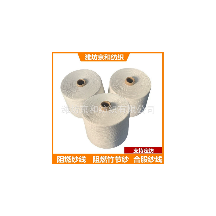 产品名称:40支阻燃纱 针织机织 阻燃涤纶纱线 化纤纱 潍坊京和纺织