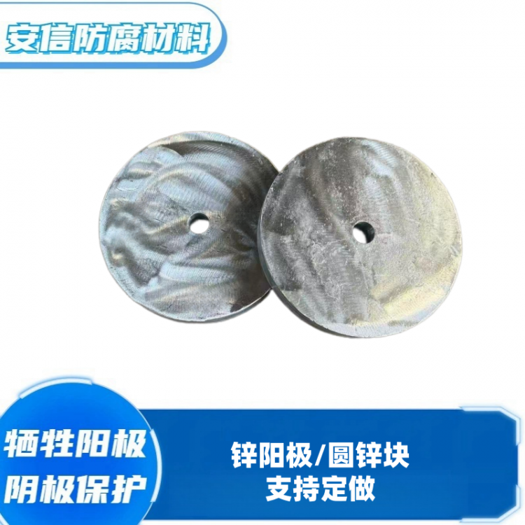 锌也可做成镯式阳极,主要应用在水下和海底管道上,一种是作成块状然后焊接在钢支架上形成一个圆形,还有直接做成半环状,直接扣在管道上。