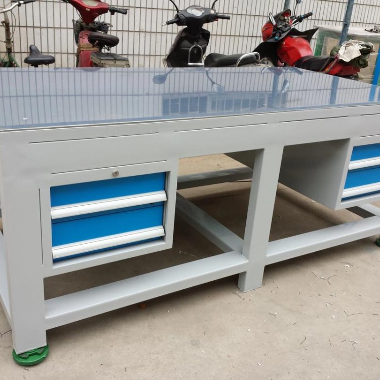 上海钢板工作台工作台厂家可配备其他部件 上海铸工工作台 上海修模台 上海研磨台 上海钢板工作台 上海工作台厂家直销,规格齐全,款式不一,可按需定制。工作台配置的抽屉、柜门方便使用者存储工具。 工作台桌面上可以增加不同的组件,如百页、方孔挂板,电源插座、照明灯具、吊具等。配合零件盒及各种不同的挂钩,工作台还可以存放各种常用的零件、工具等,更加合理地使用空模具工作台,榉木工作台,防静电工作台,中型工作台,重型工作台。