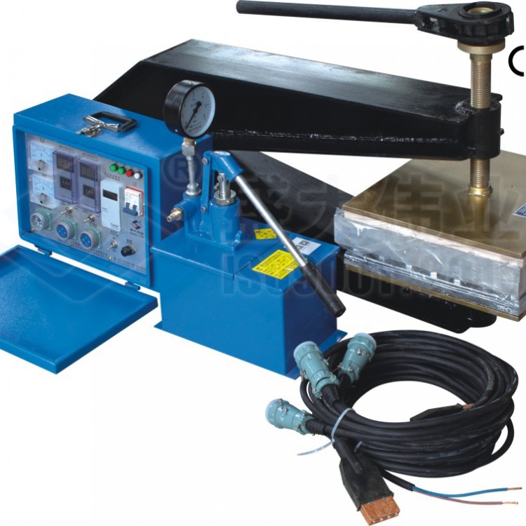 ②将下机架放置在被修补处下面(均称),在机架上,胶带下放置水压板,下加热板(在被修补处正上方);