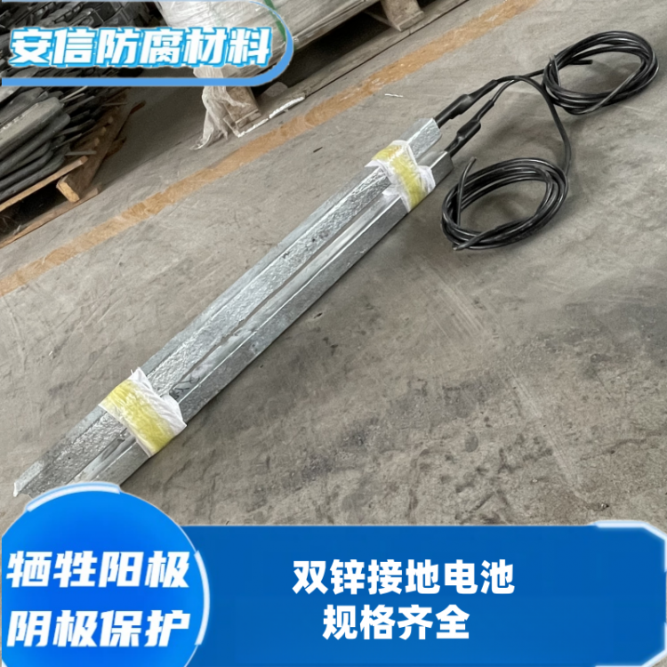 锌接地电池由平行靠近的一对或四支锌合金牺牲阳极棒组成,中间用绝缘垫块隔开,然后一起装在装有填包料的棉布袋中,通过引出电缆焊接在绝缘装置(绝缘接头或法兰)的两侧,以防止强电冲击引起的损坏。