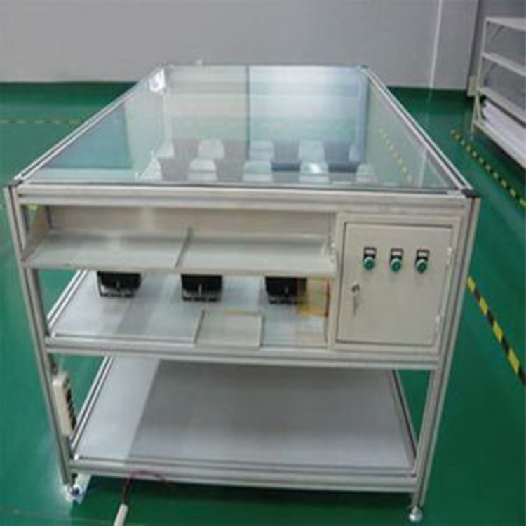 系列设备由南京博萃自动化设备有限公司专业设计制造,照明射灯间距由客户确定,配置电源插座等,钢材框架结构、表面酸洗磷化喷塑处理,整体美观、环保、经济、适用,欢迎垂询!惠顾!选购!本公司另有太阳能产品生产专用周转车、斜坡检测台、多灯光照明反向检测台等产品可供客户选择,苏州盛隆光电、无锡二泉太阳能等国内许多太阳能企业都使用本公司产品设备