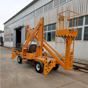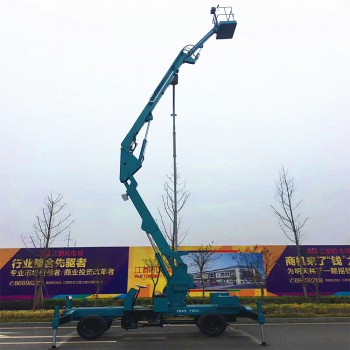拖车曲臂式升降机:可以挂在汽车上,与汽车同步,适合野外高空作业。升降方式:1、用380-220V电源2、用电源不方便,可以用电瓶驱动升降。外型美观,行走方便。