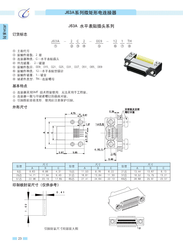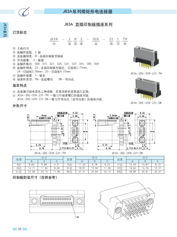 | J63A-2A2-015-121-TH: | 垂直表贴插头 |