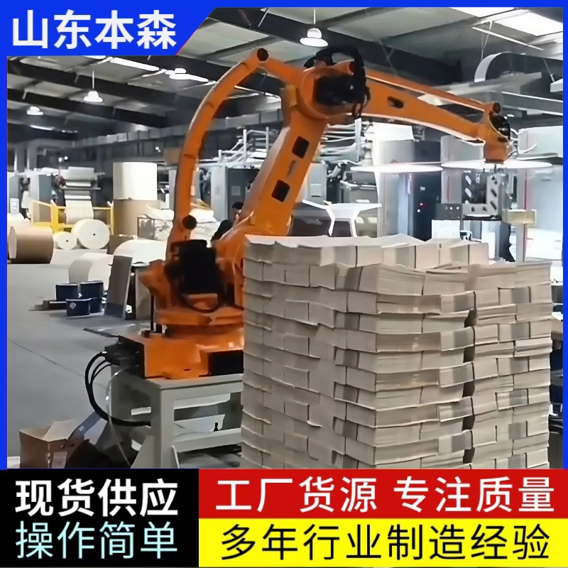 纸张书本课本搬运全自动码垛机是一种能够自动识别、抓取、搬运并码放纸张、书本、课本等物品的自动化设备。它通常由机械臂、输送带、码垛平台、抓取装置(如吸盘、夹具)、控制系统等主要部分构成,可替代人工完成繁重、重复的码垛工作。