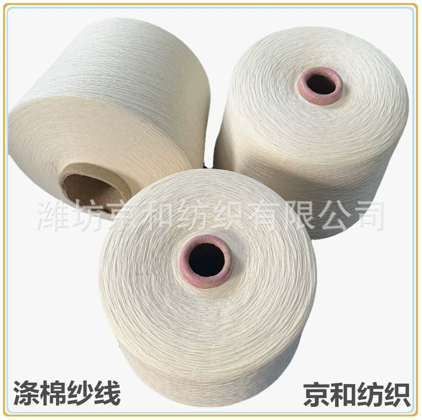 纱线条干好,毛羽少、挑三丝,适合针织、机织,用于做服装面料、针织汗布、针织起绒、针织毛圈、地毯合股之后用于做织带等。涤棉纱常规配比:t65/c35 t50/c50 t80/c20 cvc60/40 cvc70/30 cvc80/20等配比,常规支数有:6支—60支。 可按客户要求订做反捻纱、竹节纱、合股纱等。