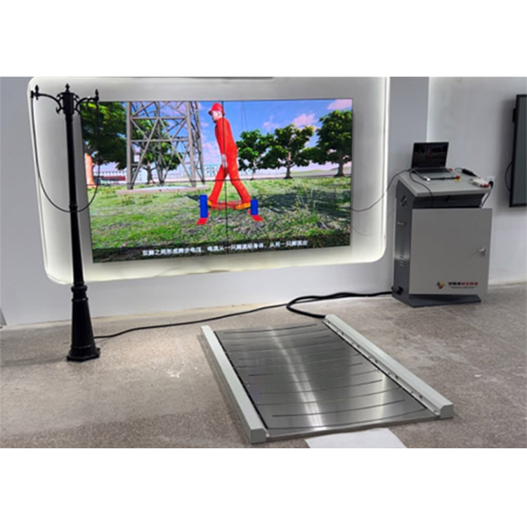 本产品安装使用于安全体验展厅、展馆等,利用铺设的感应装置配合多媒体电脑以及道具布景,共同构成多媒体模拟跨步电压体验系统,通过体验者逐步前进,触发电极形成真实触电感,了解跨步电压安全知识,在通过体验者触发设备后,多媒体电脑显示器同步进行动画演示讲解,在充满互动趣味的同时,让体验者深刻了解遭遇跨步电压后的自救方法,留下深刻的学习记忆印象。