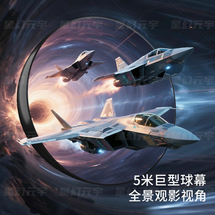球幕飞行影院采用弧形球幕设计,搭配180°旋转飞行系统与多维度感官交互,核心参数尽显专业:球幕参考直径达5米,弧长7.85米,弦长5米,构建出无边界全景观影视野,让用户仿佛纵身跃入画面之中,彻底告别“旁观者”身份,深度融入每一段飞行旅程。