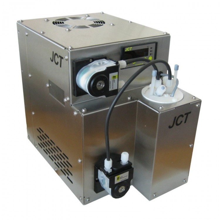 JCT冷凝器主要用于降低样气中的露点,分离分析系统里湿气中的水蒸气,为气体分析之前的设备提供干燥样气。该冷凝器设计有改良的比例温度控制器和高性能热交换器,热交换器装在铝质圆柱筒里,内置冷凝泵可不断排放冷凝物。紧凑型冷凝器为单气路,中型冷凝器有单气路或双气路,热交换器材质可选 PVDF、不锈钢或玻璃。
